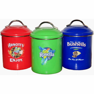 ARNOTTS BUSHELLS & ROSELLA Vintage Style Canister 3pc Set - Coloured