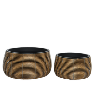 KAEMINGK Wicker Low Planter Round - Set of 2 **Limited Stock**