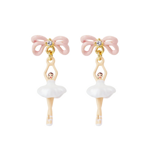 LES NEREIDES Stud Earrings - White Tutu & Pink Bow Mini Ballerina