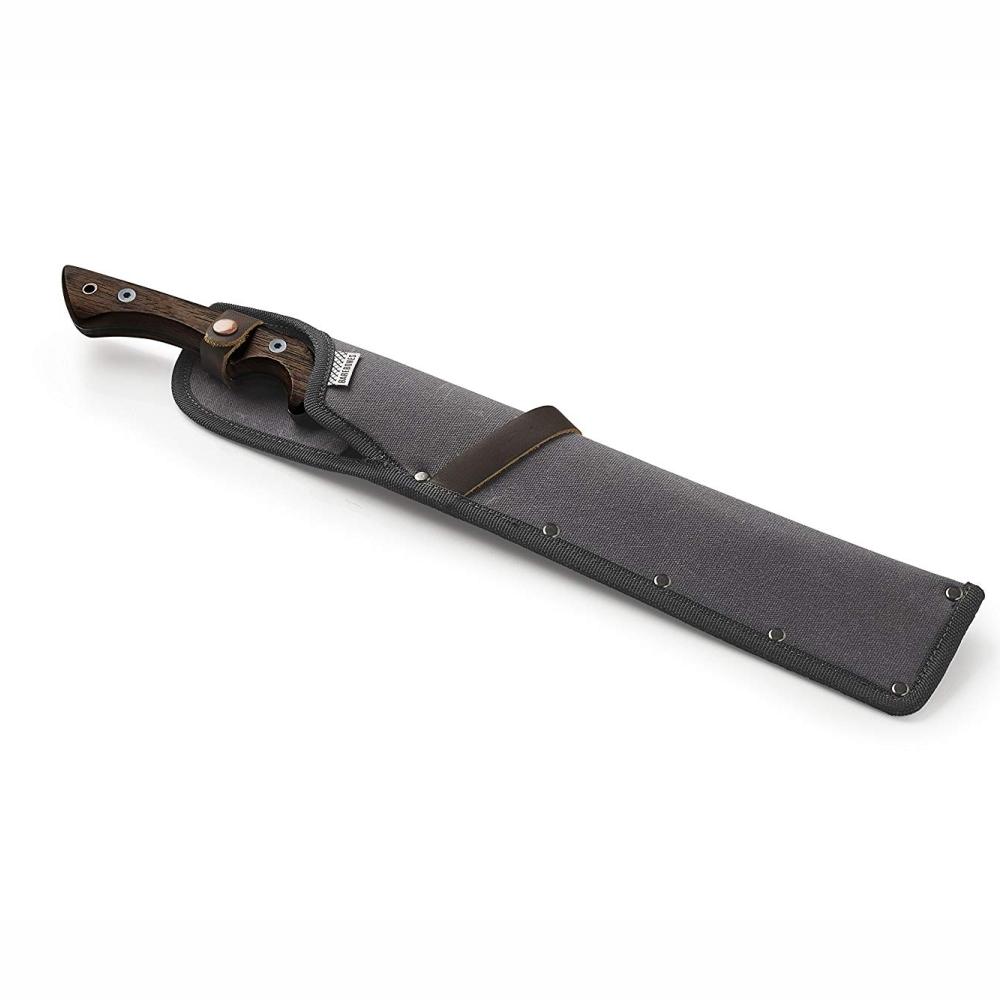 The stainless steel blade and a solid steel core that extends through the length of the hardwood handle lend stability and greater swinging weight yet it still packs thin and light, making it an essential addition to any collection.