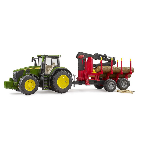 BRUDER 1:16 JOHN DEERE 7R350 Tractor W/ Forestry Trailer & Trunks