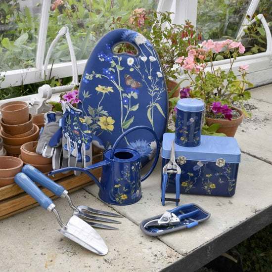 The elegant new design has been created by Burgon & Ball featuring illustrations dating back to 1815, specially selected from the RHS Lindley Library of historic botanical art. A classic navy blue background lets the jewel colours of the blooms and butterflies shine out, bringing this lovely design to life - and this Kneelo® garden kneeling mat has plenty of space to show the gorgeous design off to perfection.