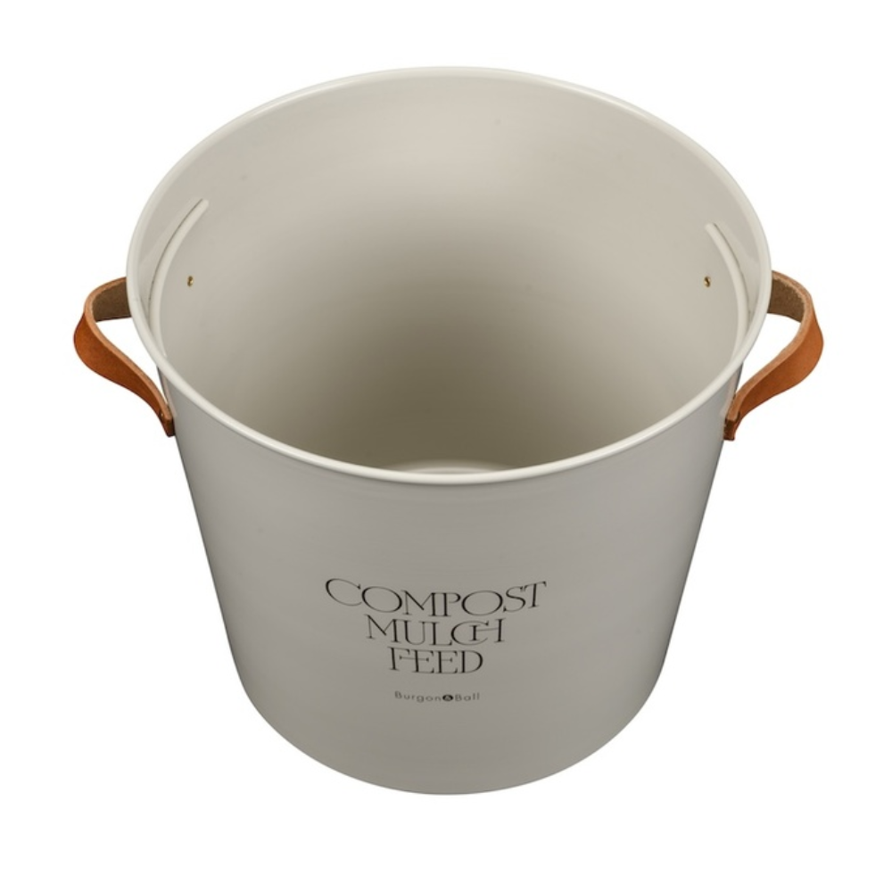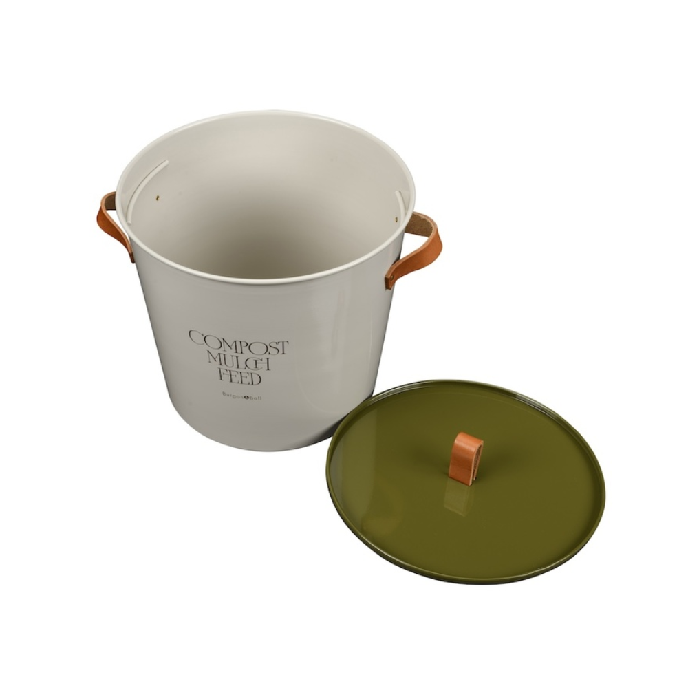 This stylish compost bin is aesthetically pleasing as well as appealing to the ethically and environmentally aware consumer who home composts. It has a mushroom coloured base and contrasting lid with leather handles. Sleek contemporary styling with on-trend graphic treatment and sophisticated subtle colour.