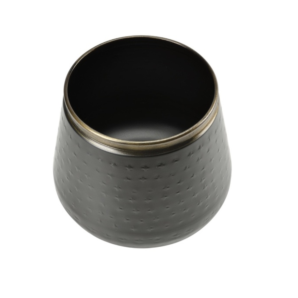 Taking its cue from the interiors trend for eclectic earthy classics, this metal cachepot adds an element of understated luxury to your room. With its dark colour, warm metallic gleam and subtle texture, this design really comes to life when greenery or flowers are added.