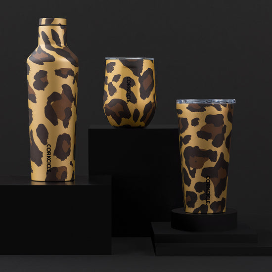 Luxurious animal prints merge with Corkcicle high-design, insulated Canteens and Tumblers.