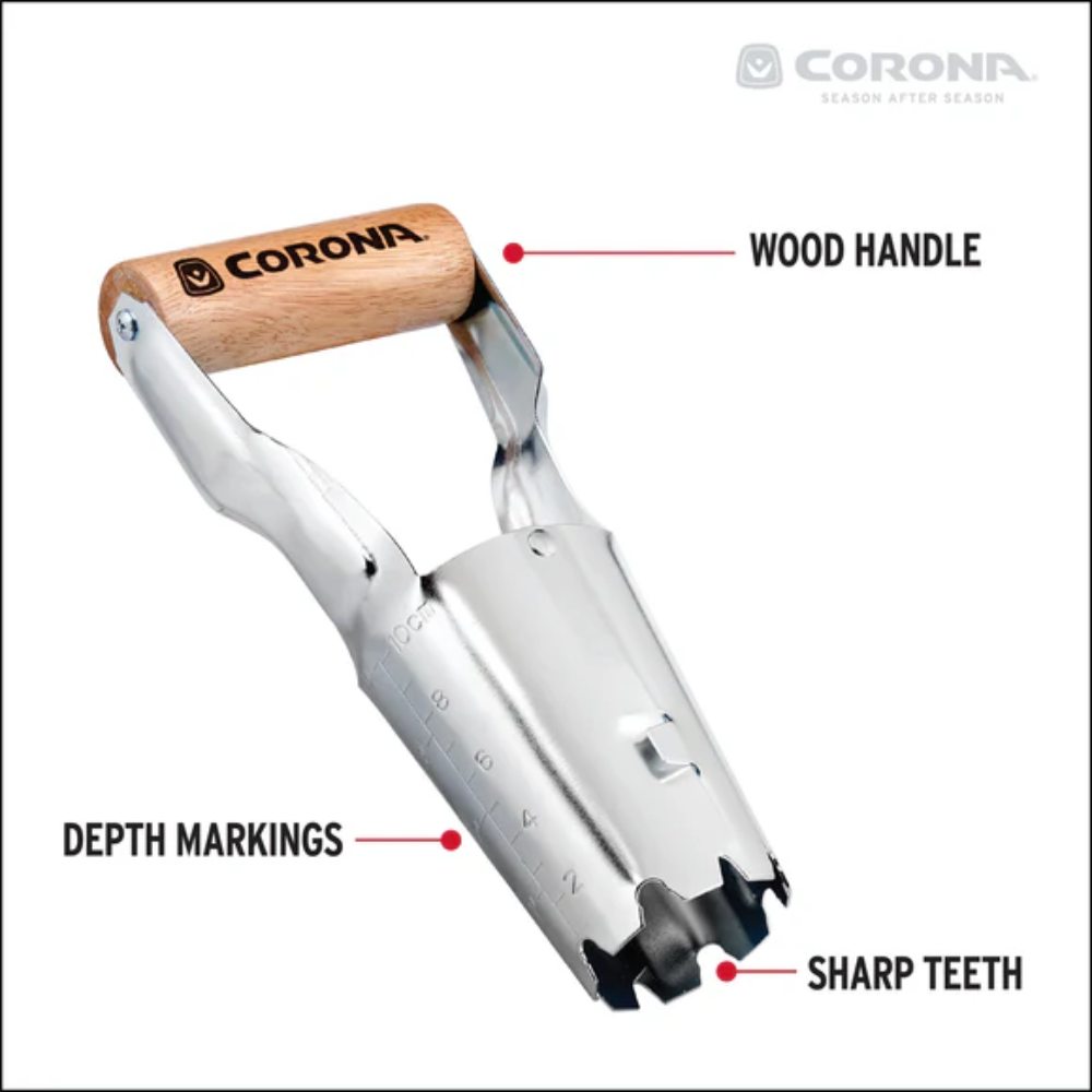 When it’s bulb-planting season, there’s nothing better than a flower bulb planter that works as hard as you do. With a carbon steel head and a wooden handle, our Classic Wood Handle Bulb Planter offers a natural look and feel while making light work of your garden to-do list. Not to mention, its sharp teeth are great for penetrating tough soil, while its depth marker can help guide you for perfect bulb placement. Discover everything our hand tools collection has to offer. From gardening to landscaping, Corona Tools covers it all. Digging, cutting, weeding, pruning—you name it, and we’ve got a hand tool for it.