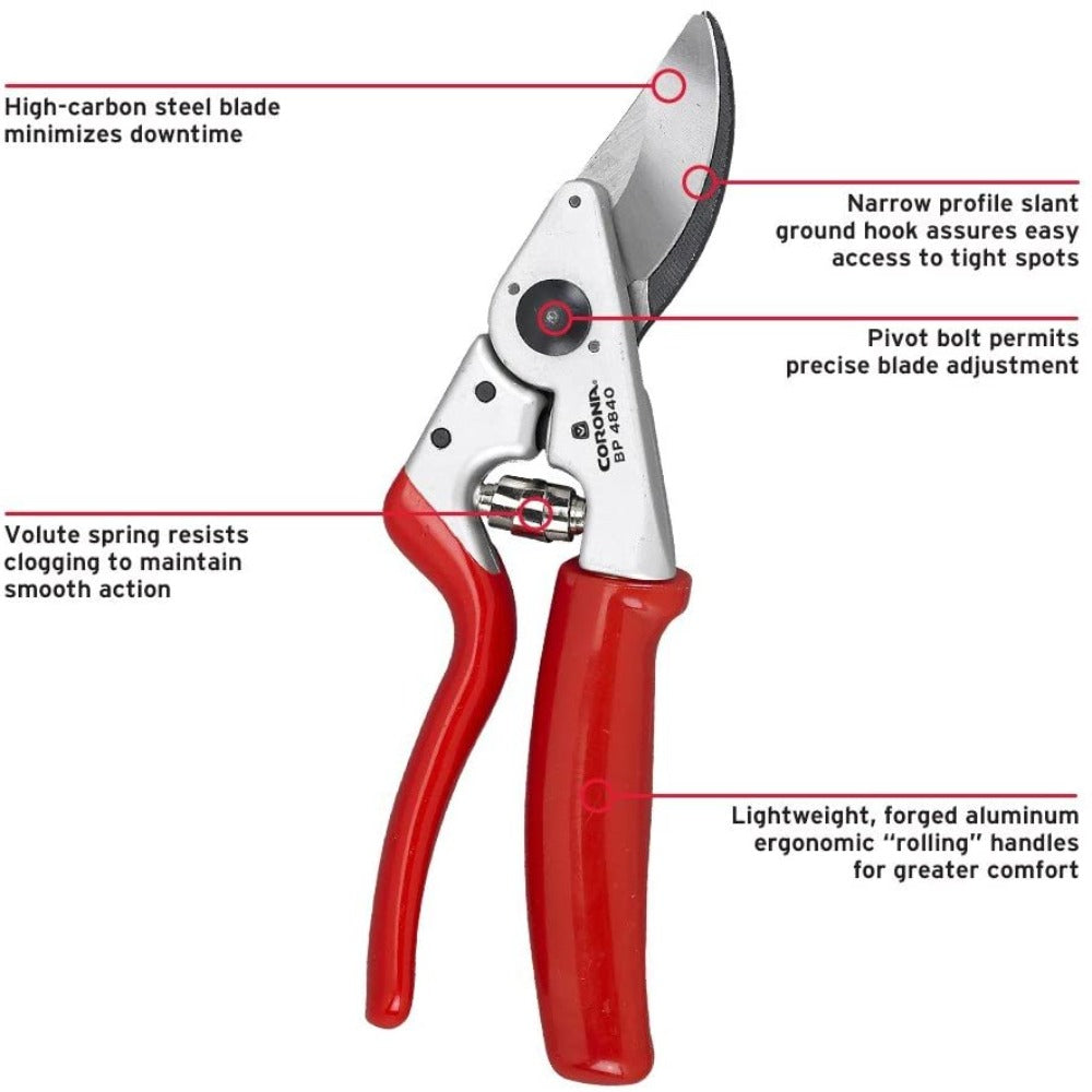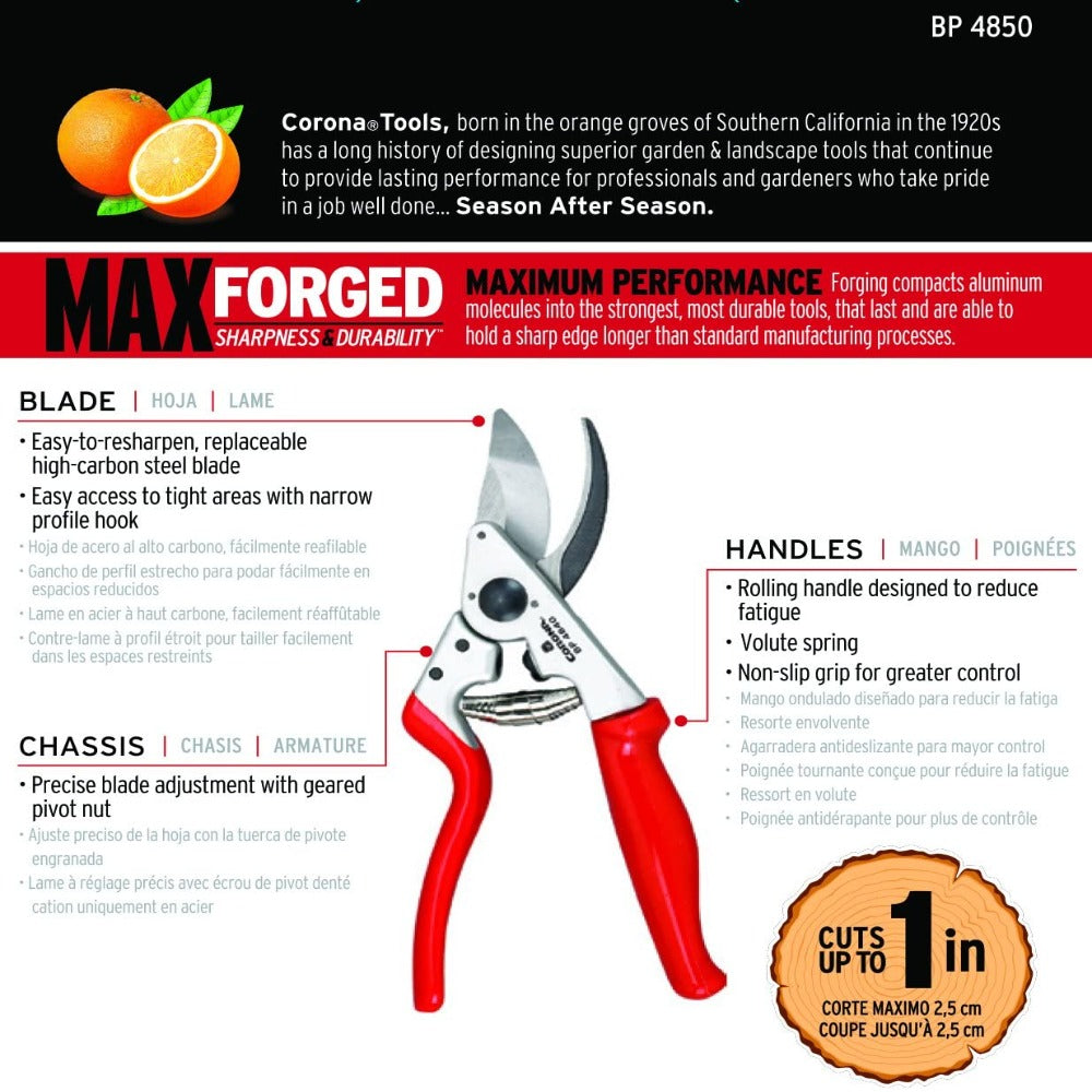 CORONA Forged Aluminum Rolling Handle Bypass Pruner Secateurs - 1 inch capacity