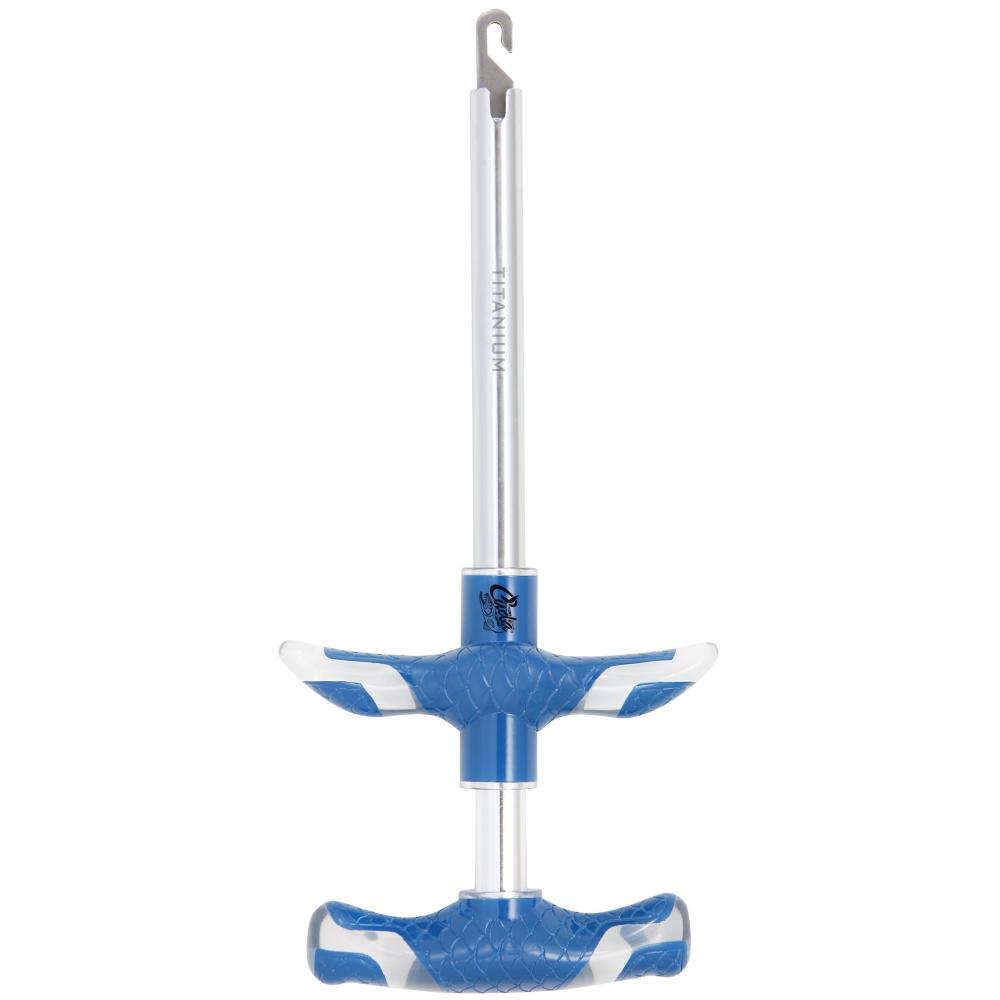 - Clear rubberized dual T-shaped handles with blue Cuda scale pattern non-slip grips