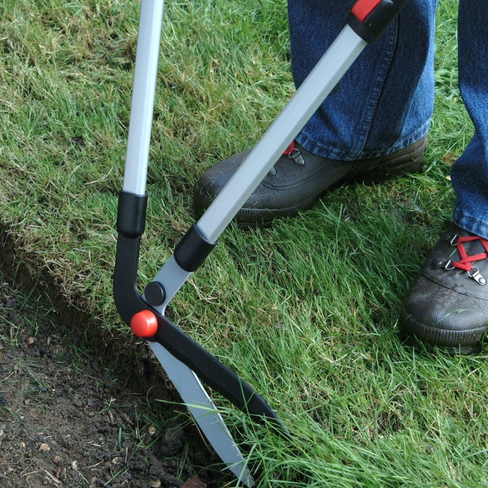 Add the finishing touch when the lawn has been cut by trimming the edges. The handles adjust from 660mm to 1080mm to acheive the perfect user height and avoid back pain. Very lightweight aluminium. Easy Flip Lock operating system for extending the handles. Approx Length of Blades - 290 mm, AN AWARD WINNER.