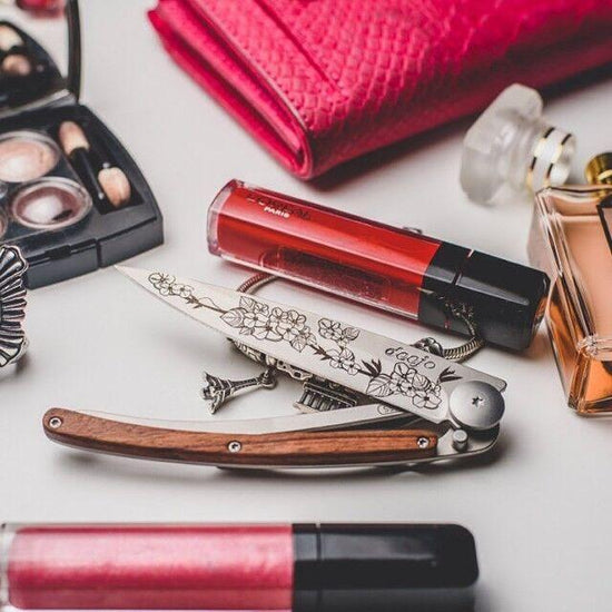 DEEJO KNIFE - In all finesse, modelled on the Deejo that adorns, this cherry tree tattoo is also one of the most poetic of our collection. For her, certainly, but not only…