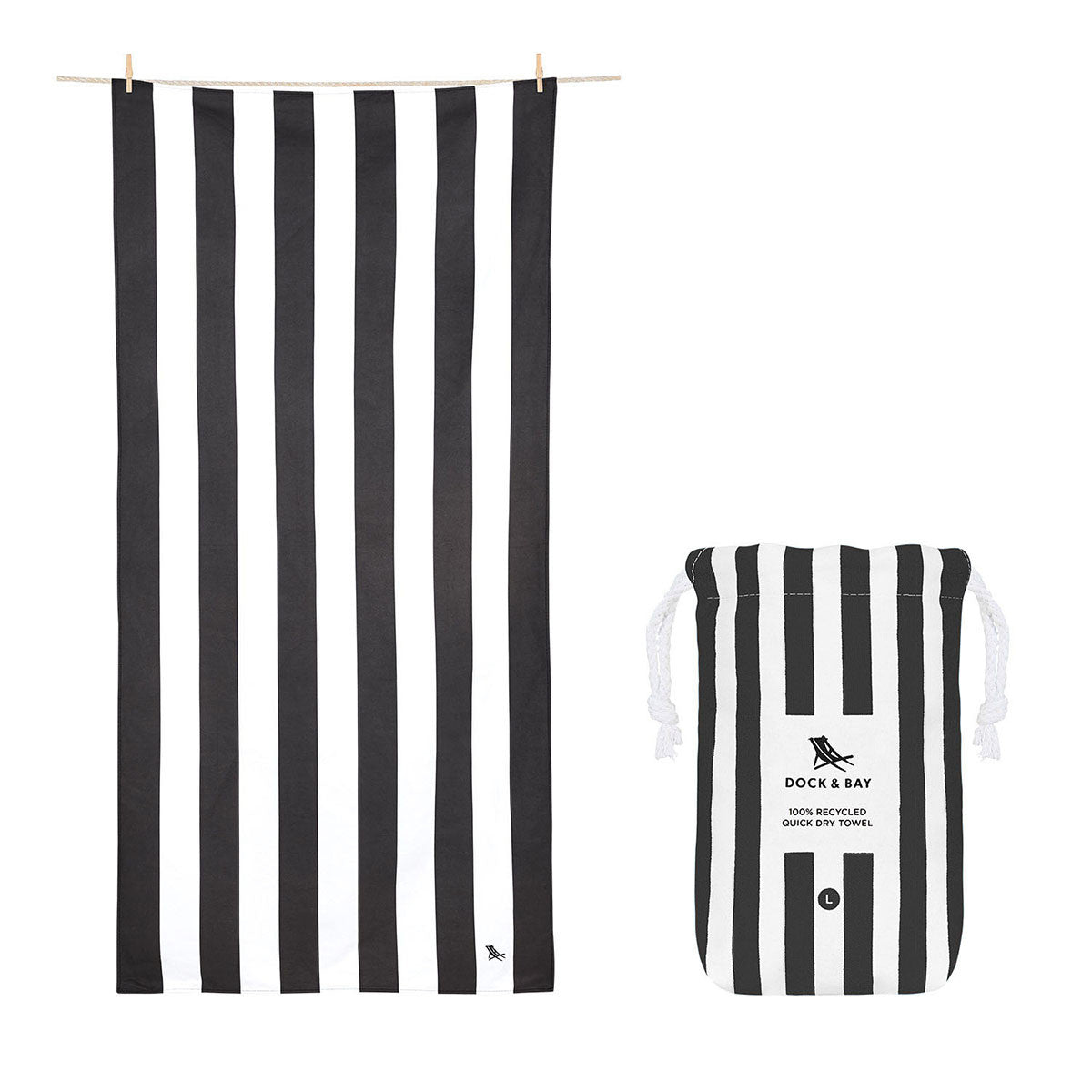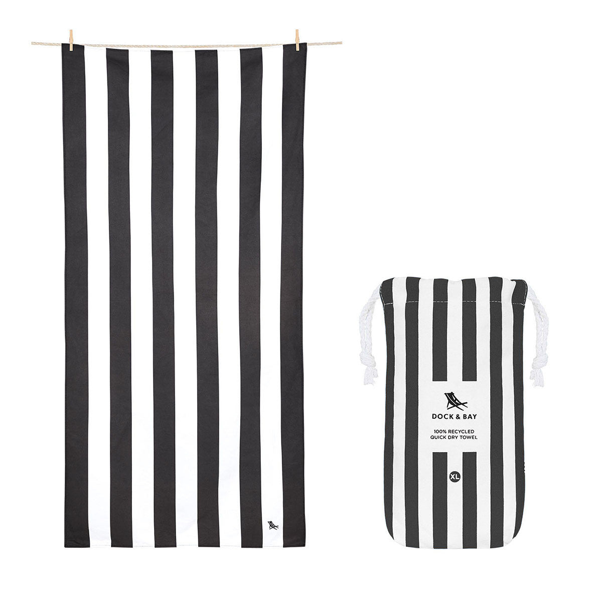 DOCK & BAY Beach Towel 100% Recycled Cabana Collection - Kamari Charcoal