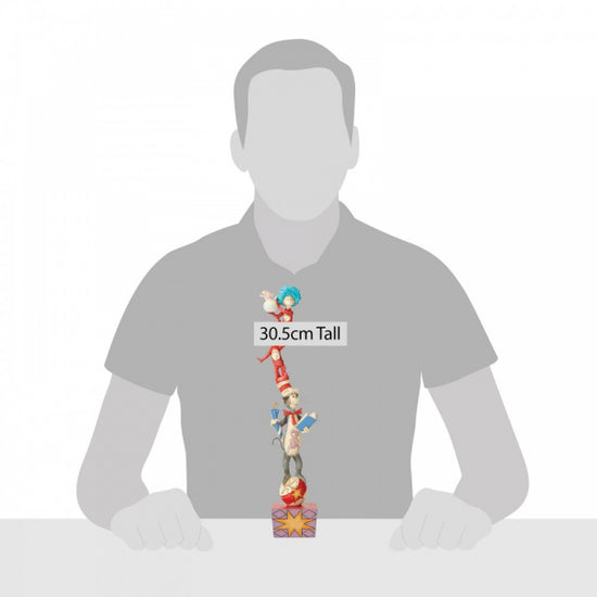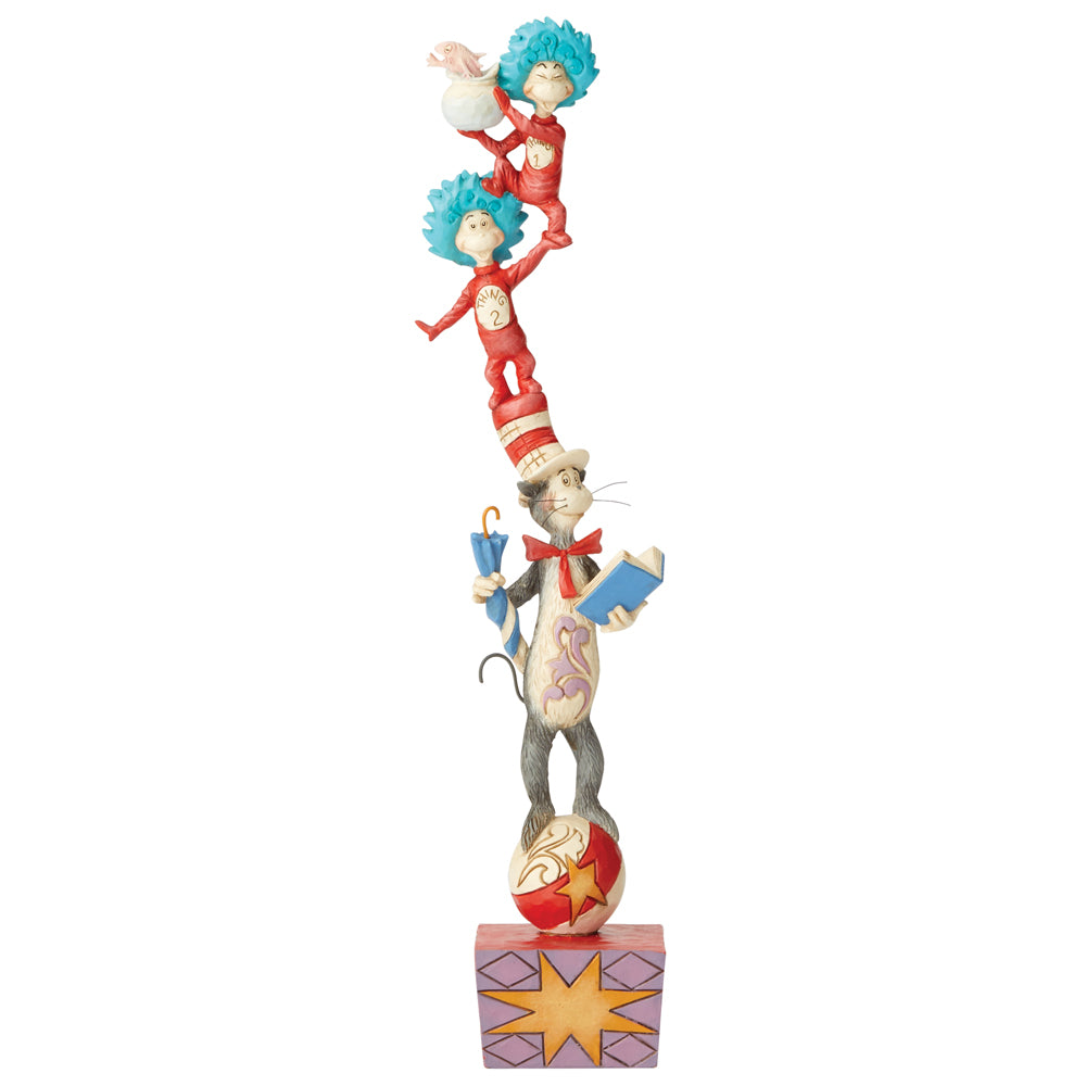 This Stacked Cat in the Hat features the beloved characters from the iconic children's book perched for destruction. Whimsically decorated with folk-art designs, this precarious totem combines the magic of Dr. Seuss and the artistry of Jim Shore.
