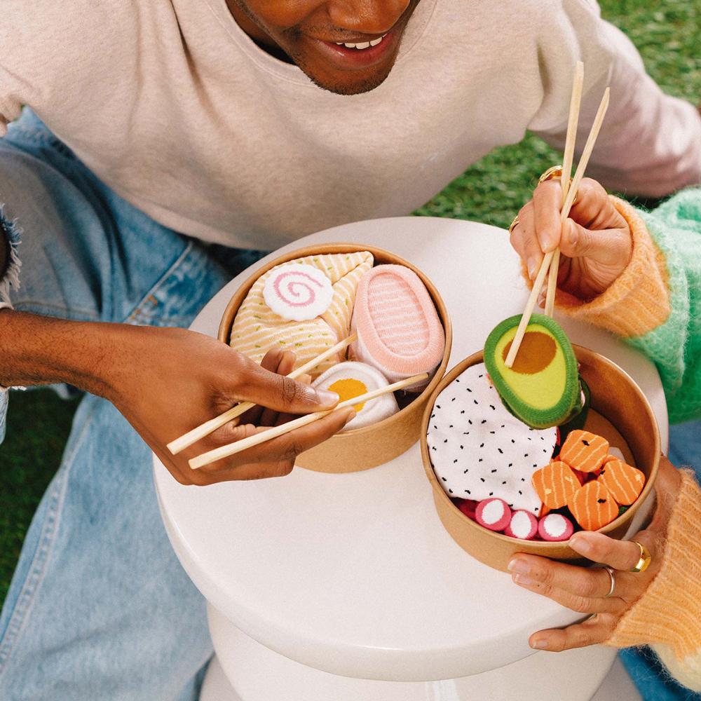 Perfect for the foodie in your life. These socks come shaped like a bowl of ramen and unravel into fashionable socks for everyday wear.