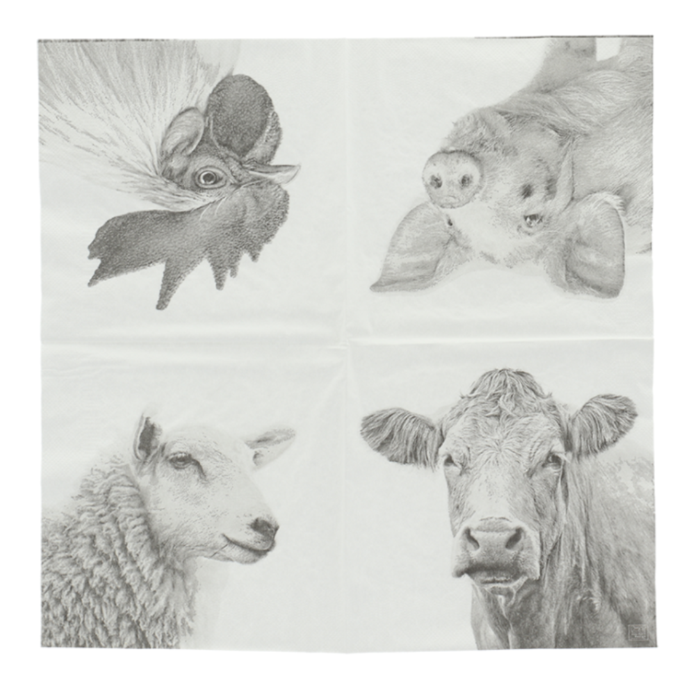 ESSCHERT DESIGN Black & White Paper Napkins Large - Farm Animals