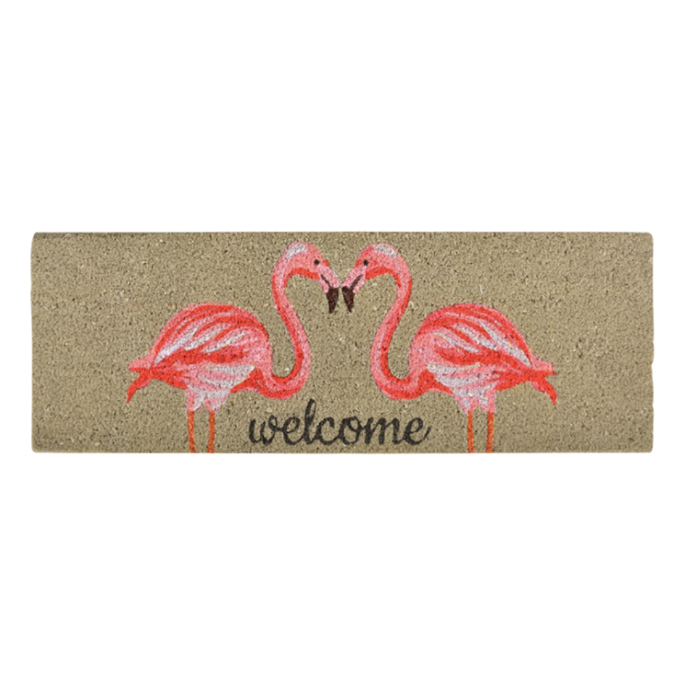 Introducing the Esschert Design Door Mat - Flamingo, a fun and functional addition to any entryway! This large rectangular coir door mat is perfect for adding a touch of quirkiness to your home while also serving a practical purpose.