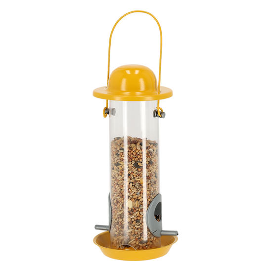 The transparent design of the silo feeder allows you to easily monitor the level of seed and when it's time for a refill. The feeder's innovative silo design keeps the seed from tipping out and getting wasted. This coloured feeder will add a pop of colour into your garden. It is designed to be hung from a verandah or tree, making it easy to place and move around your garden.