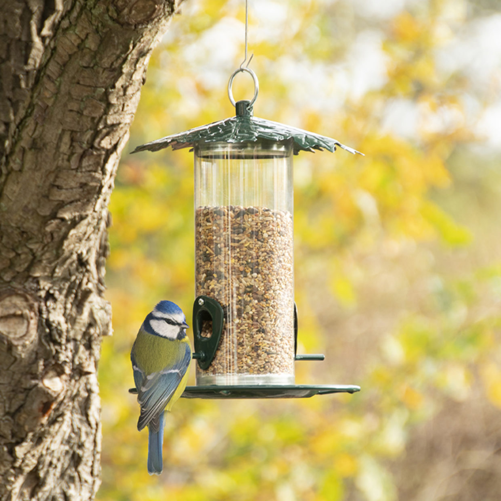The transparent design of the silo feeder allows you to easily monitor the level of seed and when it's time for a refill, this is done simply by unscrewing the ring and lifting the lid. The feeder's innovative silo design keeps the seed from tipping out and getting wasted.