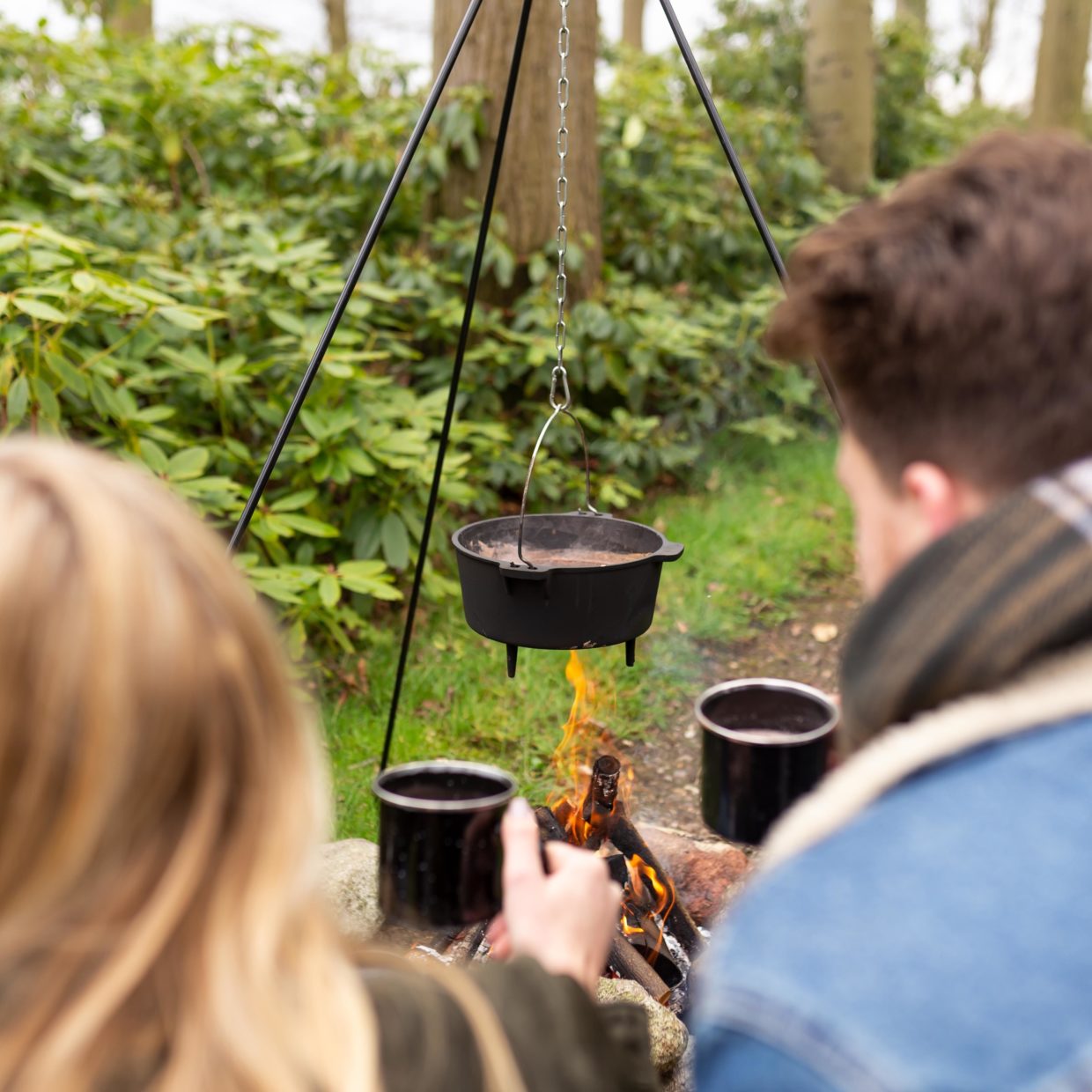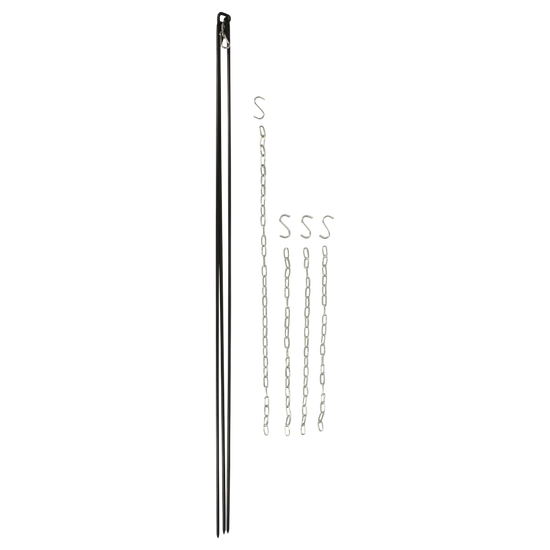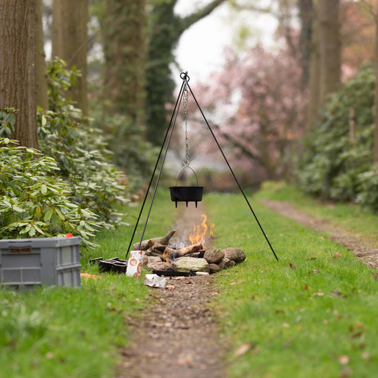 Cooking outside is an experience and an adventure, prepare the most delicious meals above the fire with this tripod stand, the various chains allow you to hang either a grid or individual pots above a fire. The design allows for quick and easy assembly and disassembly without using screws, taking up little space in storage or during trips.
