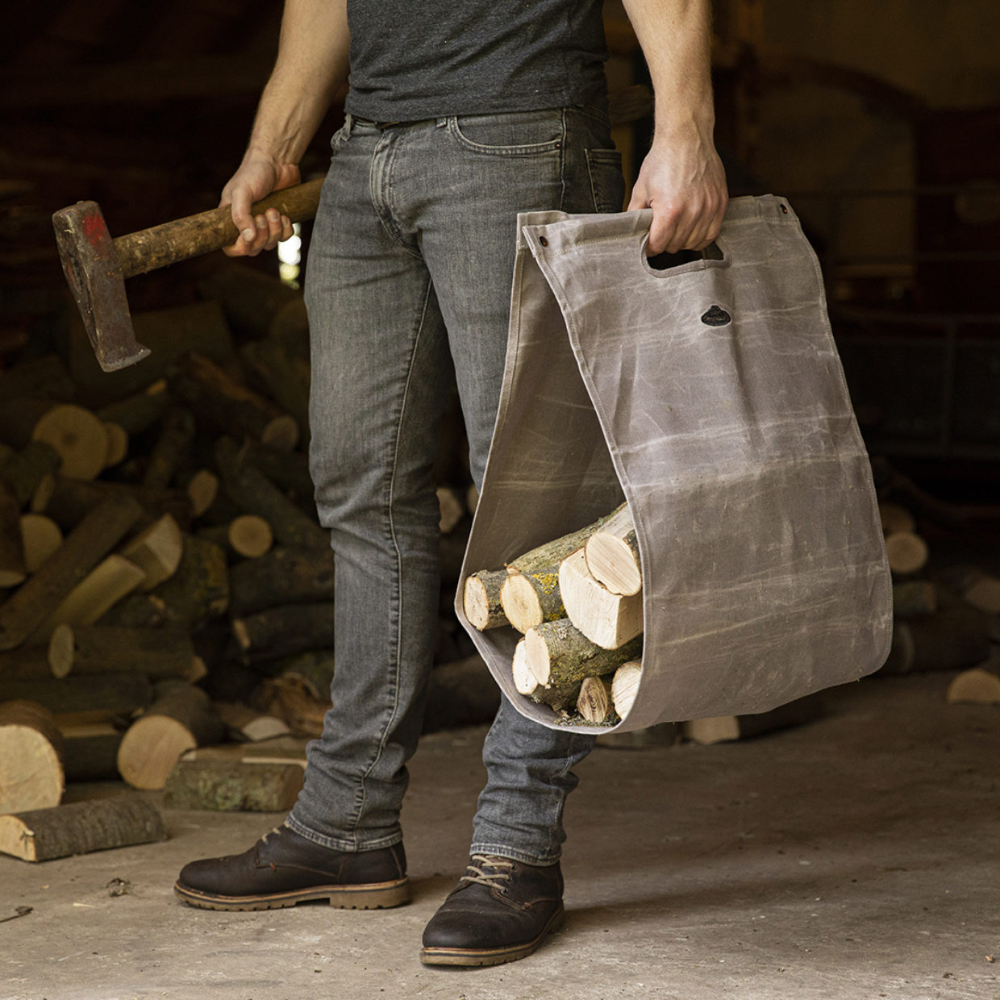 Crafted with precision and designed for functionality, this log carrier embodies a tradition that dates back to the 15th century when oil and grease were used to make fabrics waterproof and windproof. This sturdy bag is more than a carrier; it's a partner in your fireplace rituals. Use it to effortlessly fill your log baskets, ensuring a steady supply of firewood.