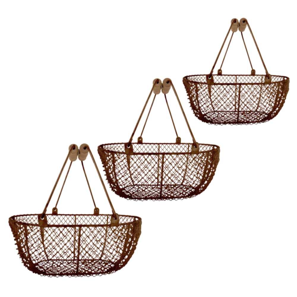 The Esschert Design set of 3 Wire Oval Harvesting Baskets are made from high-quality brown cast iron, and includes 3 sizes small, medium, and large to suit all your harvesting needs. Whether you're collecting a small or large harvest, these baskets will have the right size for the job. From collecting apples, flowers, potatoes, and more, to holding small garden tools and gloves, these baskets are versatile and perfect for a variety of tasks.