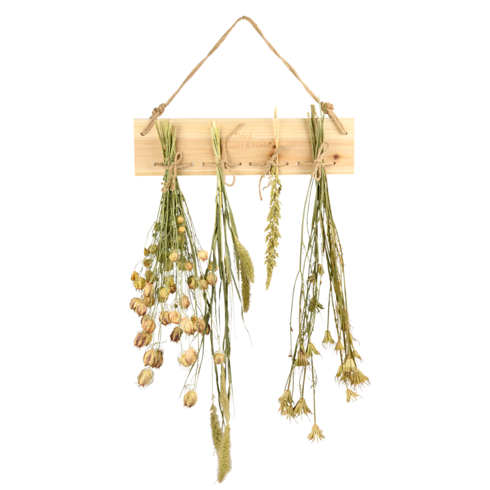 The perfect solution for drying your herbs and flowers while adding a touch of rustic charm to your kitchen or home. Simply tie your fresh herbs or flowers together with twine and hang them upside down secured by the twine to dry. Not only does this look decorative, but the dried herbs are delicious and can be used in cooking while the flowers can be used to make a lovely bouquet to display. Featuring a jute rope so this can easily be hung from a hall hook.