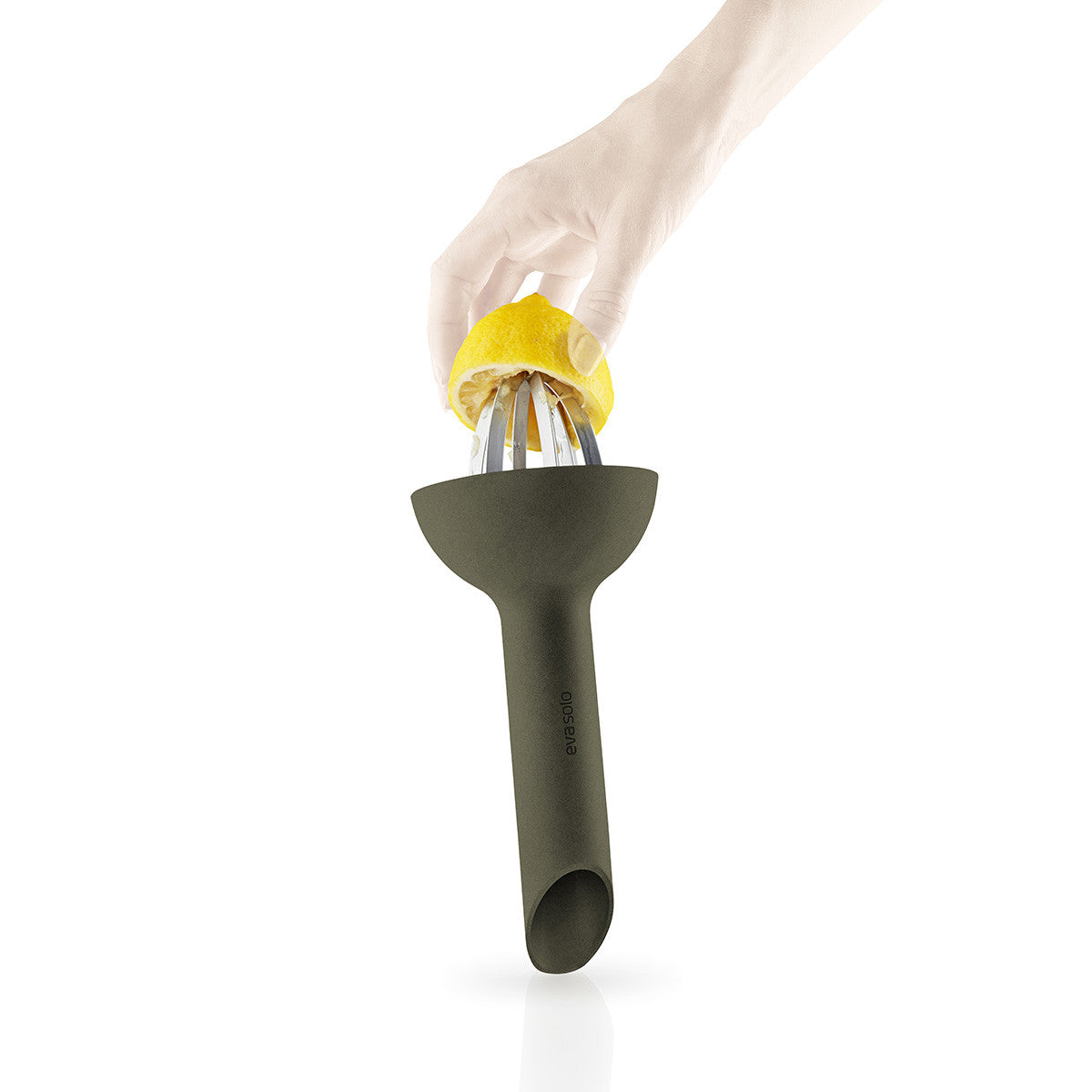Enjoy the juice - and only the juice - of tasty citrus fruits with the Eva Solo Citrus Press. Gently turn the fruit against the core of the press, and allow the juice - sieved of pips - to run through the handle of the press, straight into a jug or glass. The handle acts as a funnel, making pressing fruits easy and minimising mess.