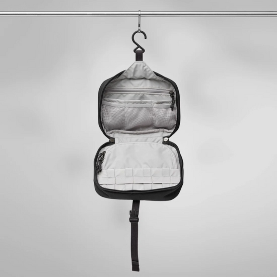 Necessity Bag with numerous compartments and sleeves to help keep your gear organised. Made from hardwearing recycled polyamide with TPE laminate and lined in recycled polyamide with PU coating. Lightly padded to protect contents. Clever design with a strap that doubles as a handle plus a hanger hook inside. Inside you will find two zippered pockets, an open sleeve pocket, three mesh sleeves and elastic loops perfect for a toothbrush, makeup or pens. Färden Necessity Bag is a must when travelling.