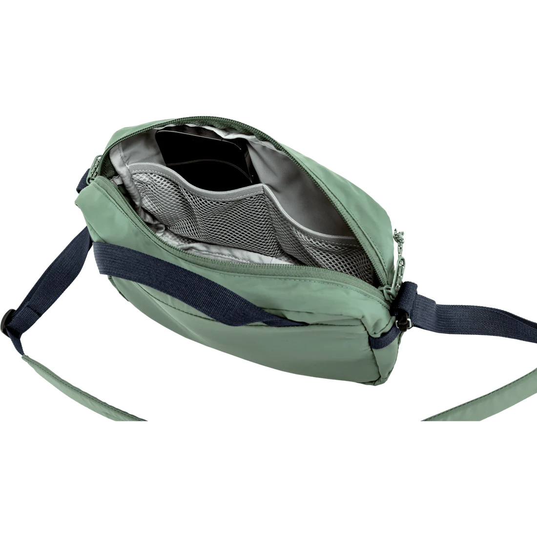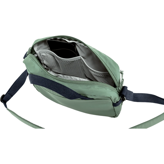 - A lightweight and packable 3L crossbody bag made from recycled nylon.
