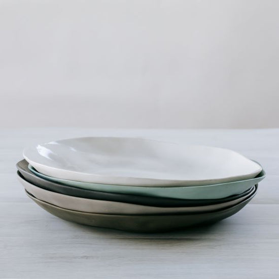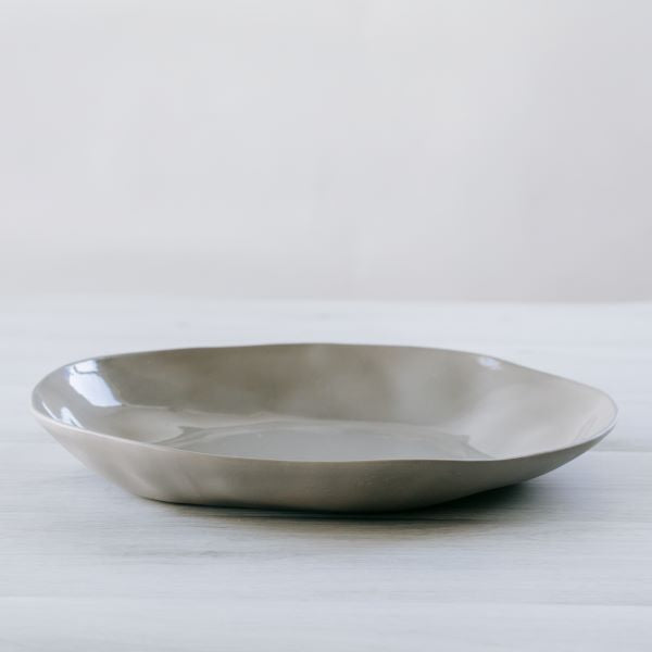 Add a touch of rustic elegance to your table with this gorgeous grey serving plate. Its unique irregular shape and style will elevate any table setting, or use it as a fruit bowl for a beautiful display on your benchtop. A must-have addition to your serving ware collection for any occasion.