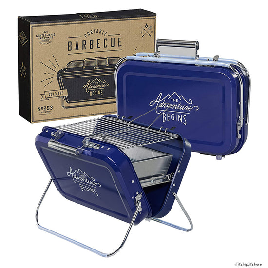 The Adventure lives on Grill up a storm wherever the adventure take you with the Gentlemen's Hardware Portable Stainless Steel Charcoal Barbeque Grill with Coal Tray. This easy to set up stainless steel barbecue features a lightweight construction with a navy powder coated finish and clasps to secure.