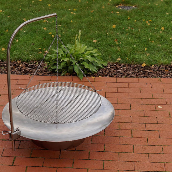 This Hanging fire grill grate suits the Alfred Riess Stromboli fire pit (purchased separately)