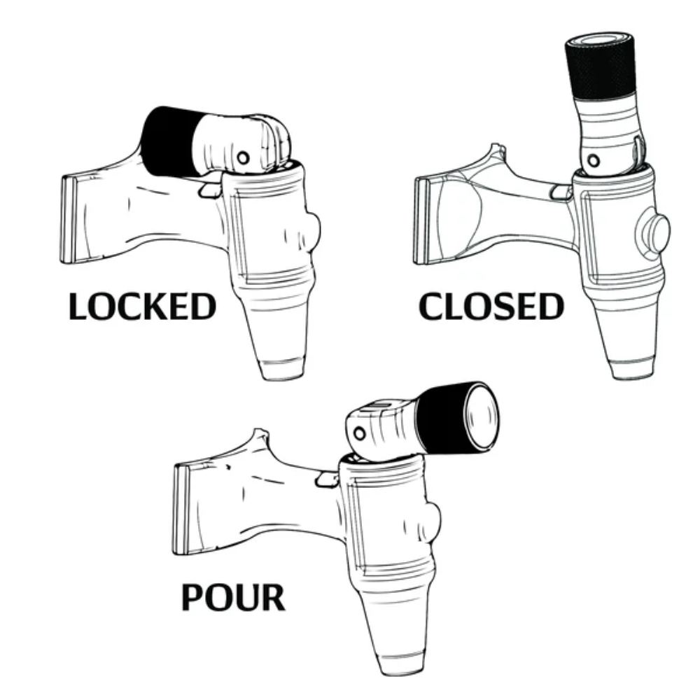 - 3-position dispenser tap provides easy pouring and storing with locked, unlocked, and pour positions