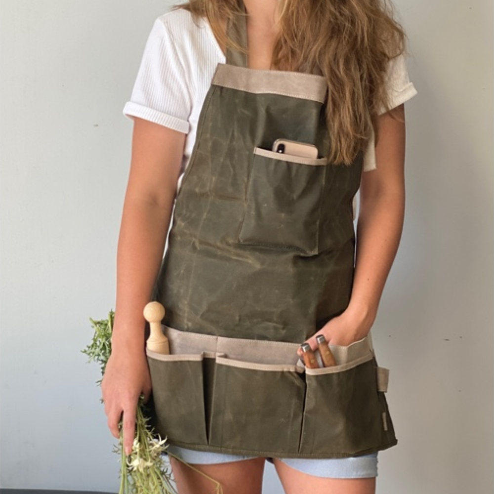 this lovely Heaven in Earth Waxed Canvas and Suede Apron is based on a French design and is made from a Lighter 8oz waxed canvas and deluxe suede makes this durable apron as well as easy to move around the garden in. This Apron features plentiful pockets and loops to help you carry around your favourite tools or hand tools of every kind.