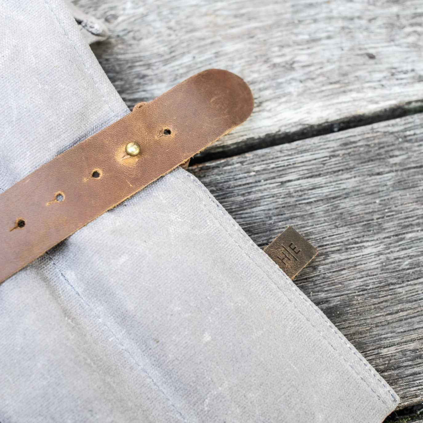 Made from durable 16oz waxed canvas with reinforced stitching and a simple roll-up design, this utility roll keeps items neatly arranged and easily transportable. The ash grey tone is understated and timeless, blending seamlessly with both workshop and home environments.