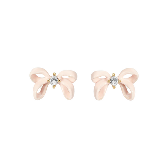 LES NÉRÉIDES Stud Earrings - Pink Ribbon & Faceted Crystal
