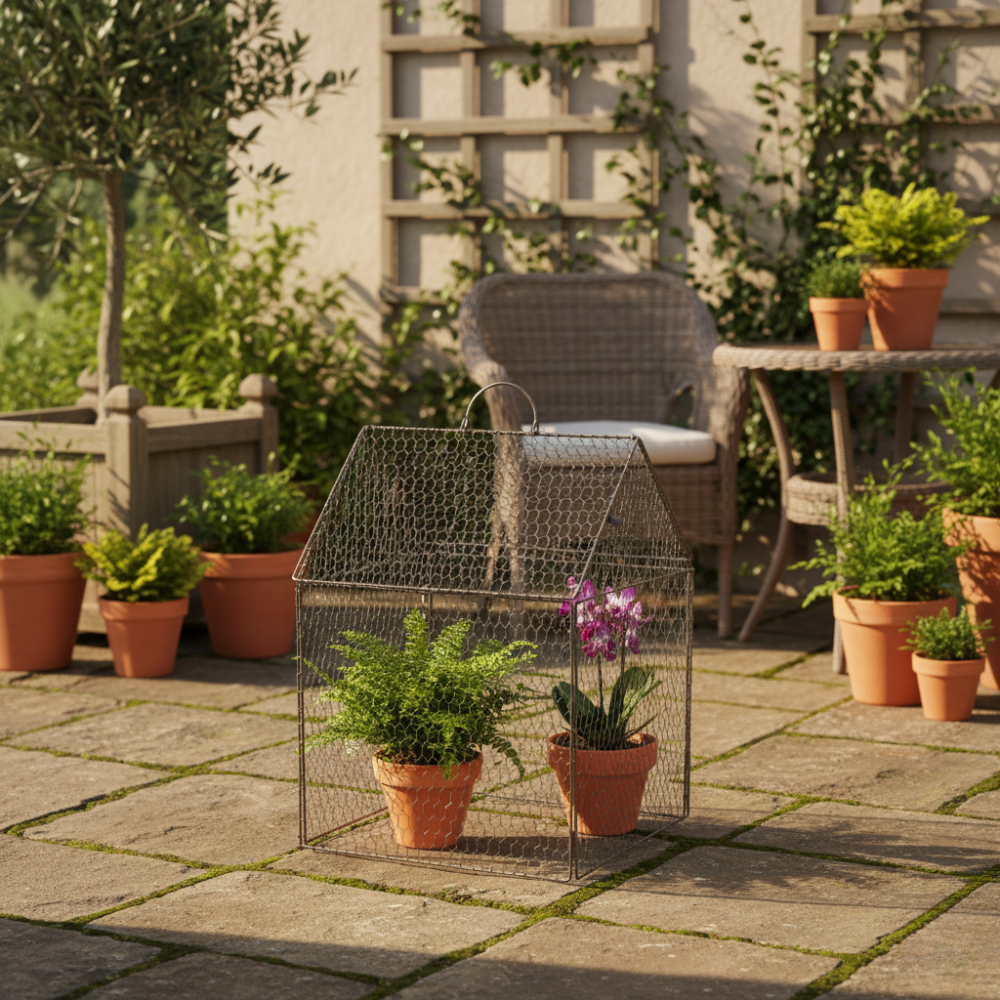The Cloche Wire House is a decorative, eco-friendly cover that shields seedlings, plants, and flowers from pests. Its practical yet charming design protects delicate growth while adding rustic character to your garden or outdoor space.