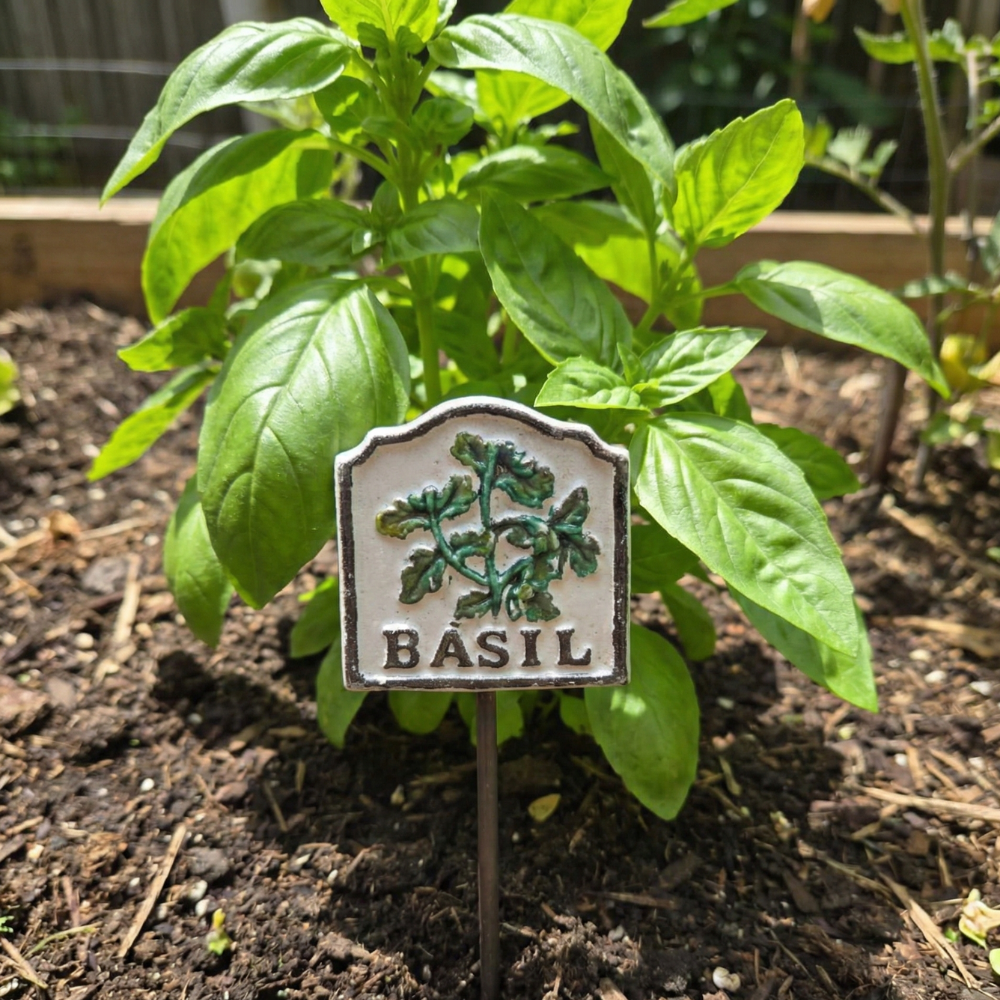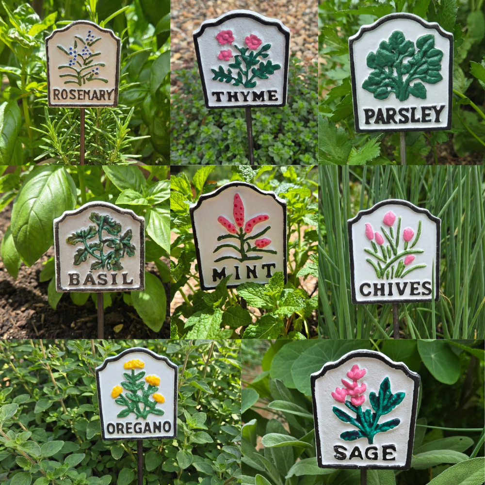 Enhance your herb garden with the charming and vintage style Cast Iron Herb Garden Markers. Made from durable cast iron and hand-painted with intricate designs, these markers beautifully label your herbs with corresponding illustrations.
