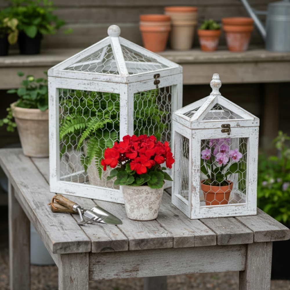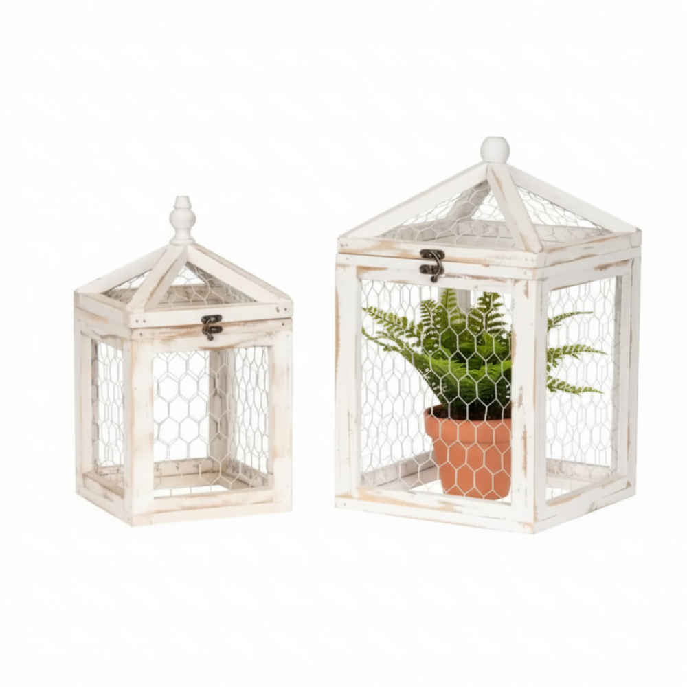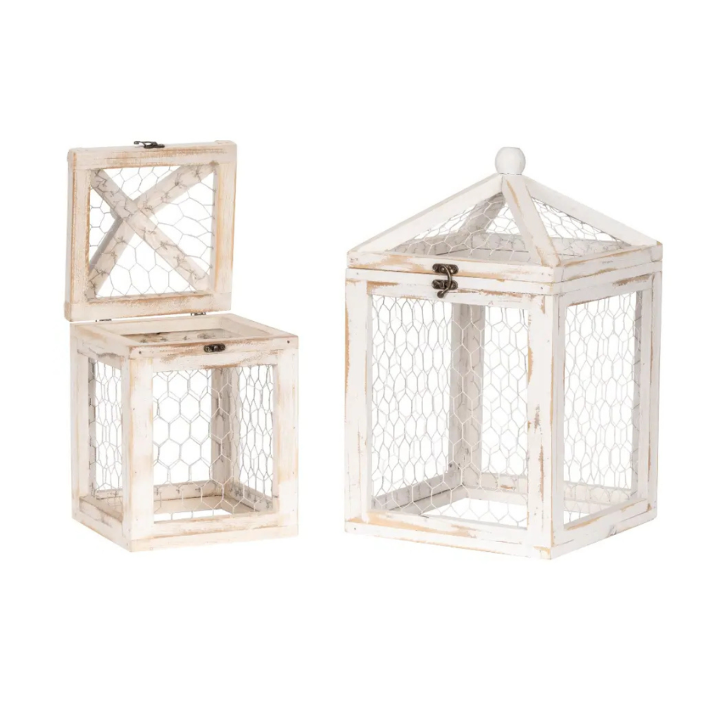 Wooden Cloche White Wash S/2 celebrates a rustic countryside feature for the garden, crafted to protect plants from pests while adding charm. Perfect for table tops or garden beds, its timeless design combines practicality and style, creating uplifting highlights in any space.