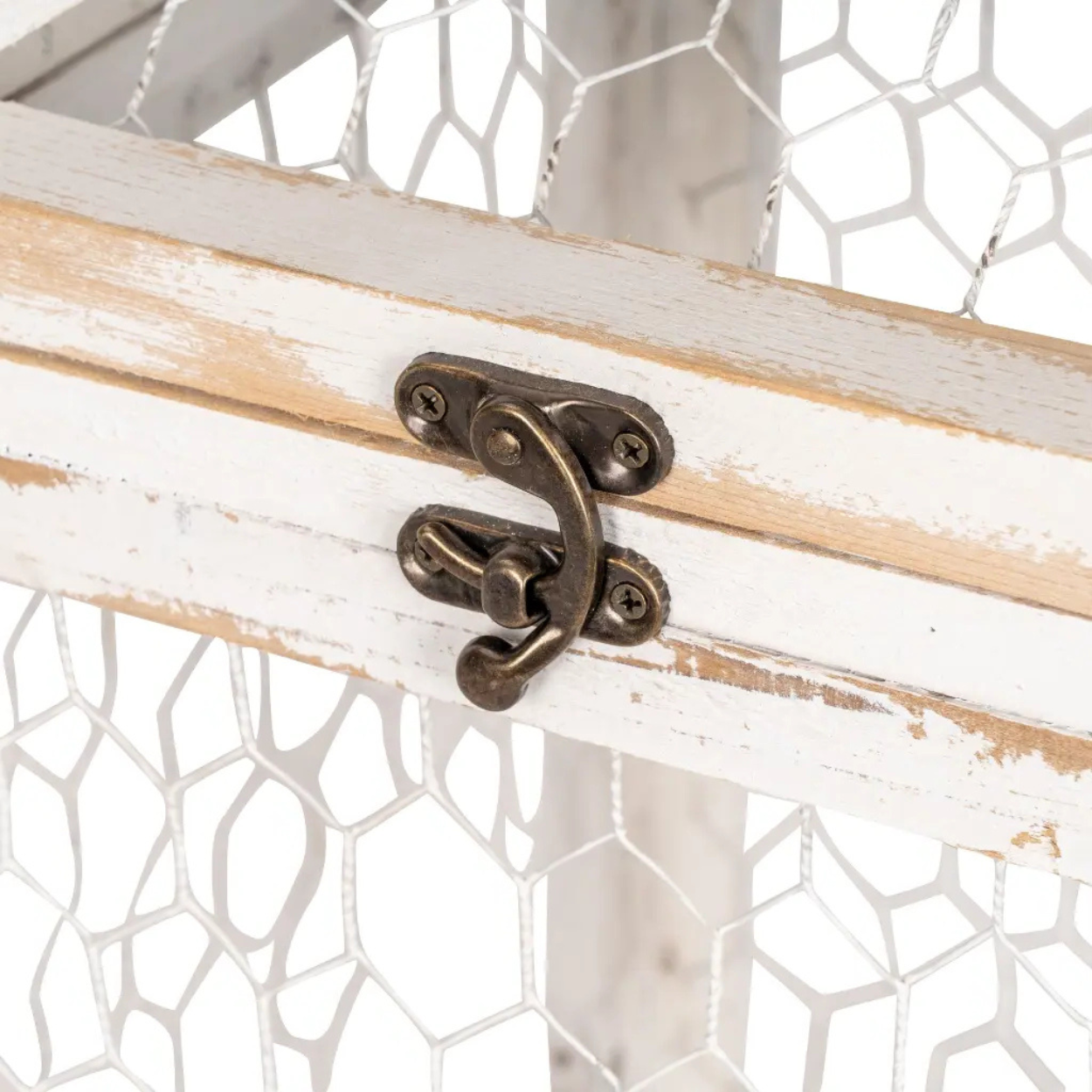 Material: recycled pine in natural finish and metal mesh wire. Treated with ACQ