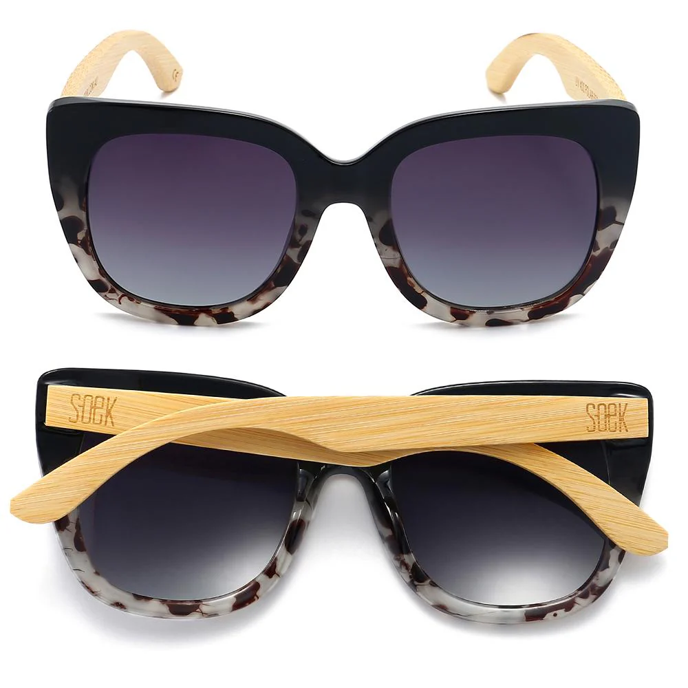 Oversized and dramatic, our Riviera sunglasses in classic black topped with flattering ivory tort are the perfect statement sunglasses to suit all face shapes and sizes. Fitted with black gradient polarised lenses and white maple wood arms, this style knows how to up your glamour game.