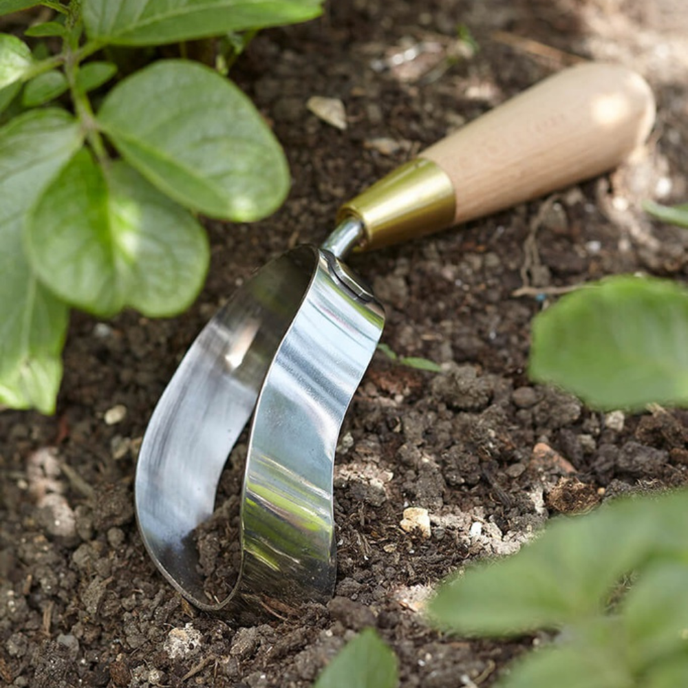 The unique angle and shape of this ergo hoe makes weeding and cultivating in even the most baked of soils a doddle. Just drop the head, with its extra sharp blade, into the soil and draw towards you. Because the blade is on the inside of the hoe head it prevents you from accidentally slicing through the stems of your prized plants!