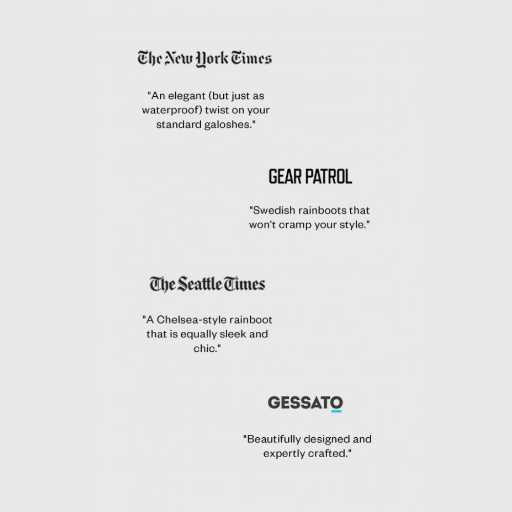 The Chelsea Rainwalker come in unisex European sizes 36-45, and are true to size.