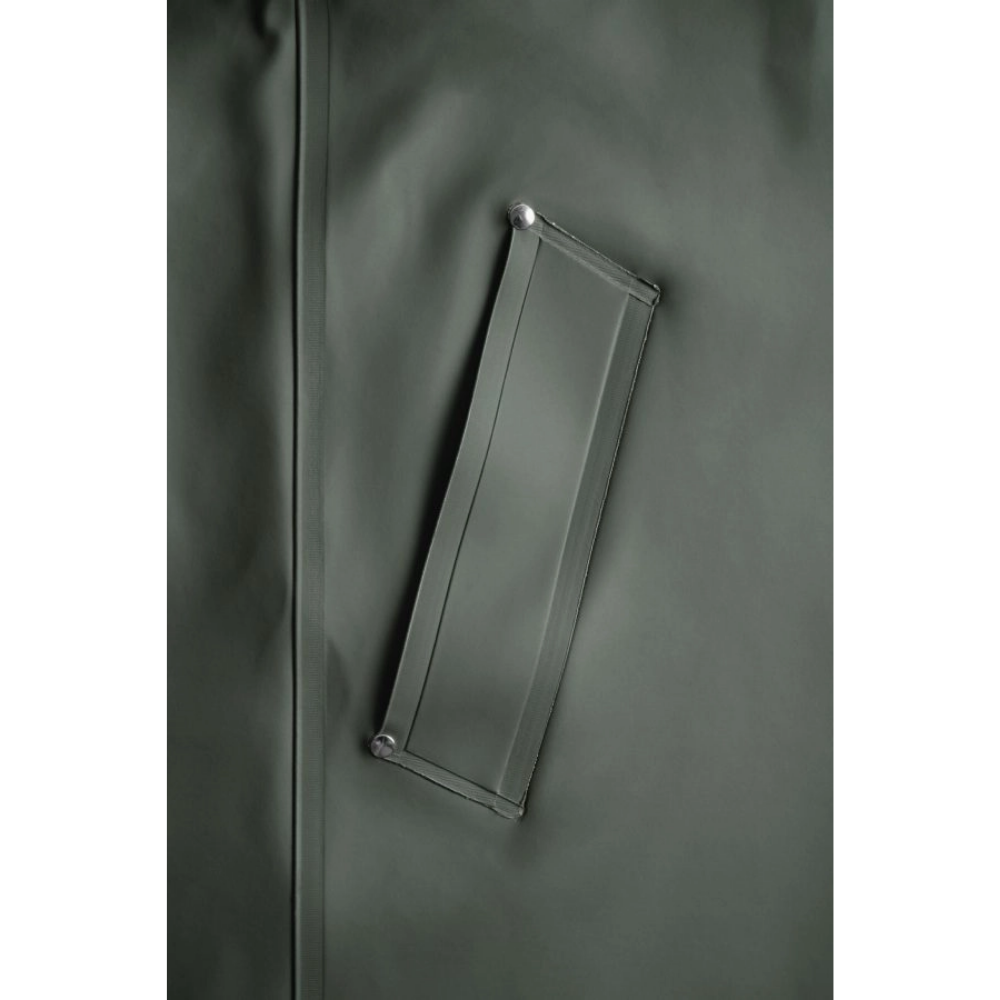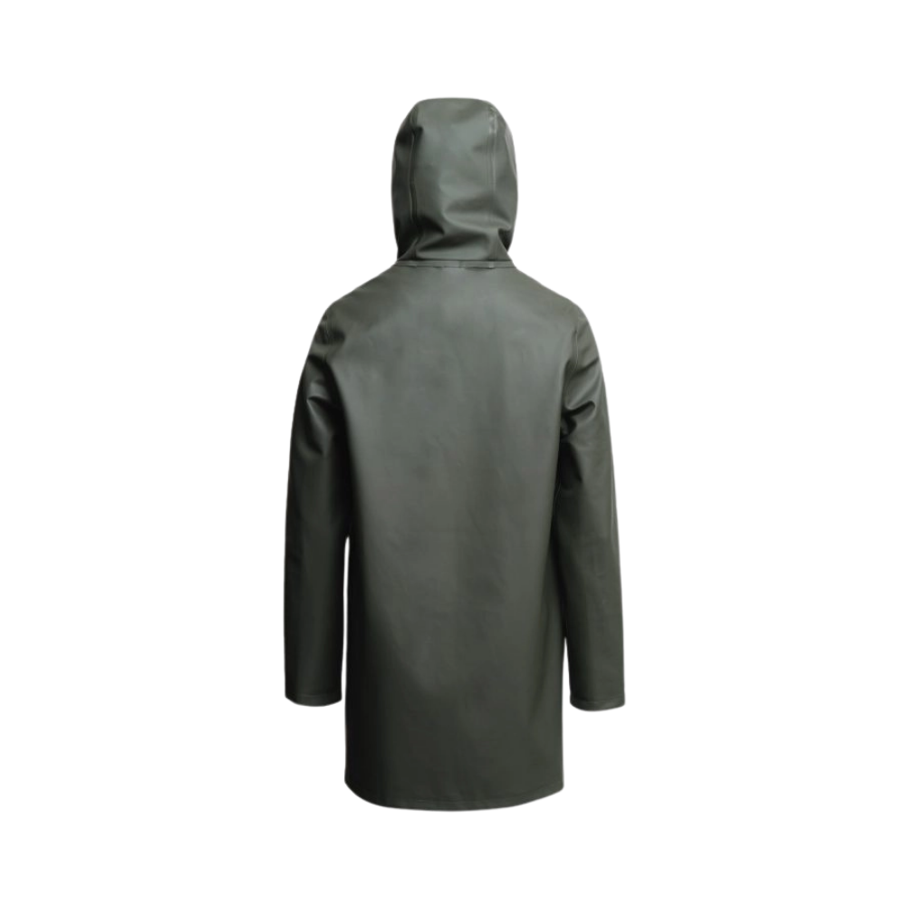 Stockholm, our home and our “patient zero” raincoat. A straight-fit jacket in heavy-weight original 530-gram rubberised cotton, 100% rainproof, with double-welded seams and snap metal closures – this is a true classic.