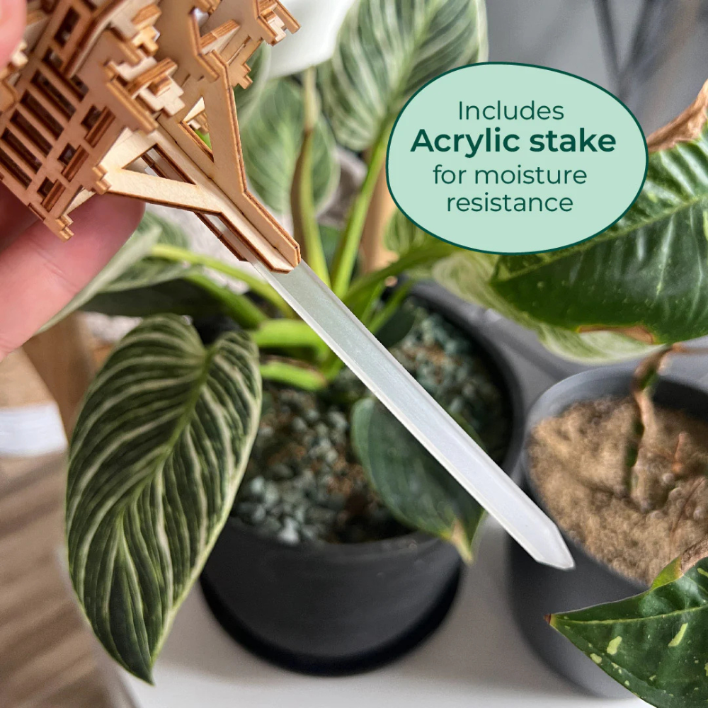 Assembled Size: in: 3.7 x 4 x 6.1H / mm: 95 x 100 x 155H, plus acrylic stakes