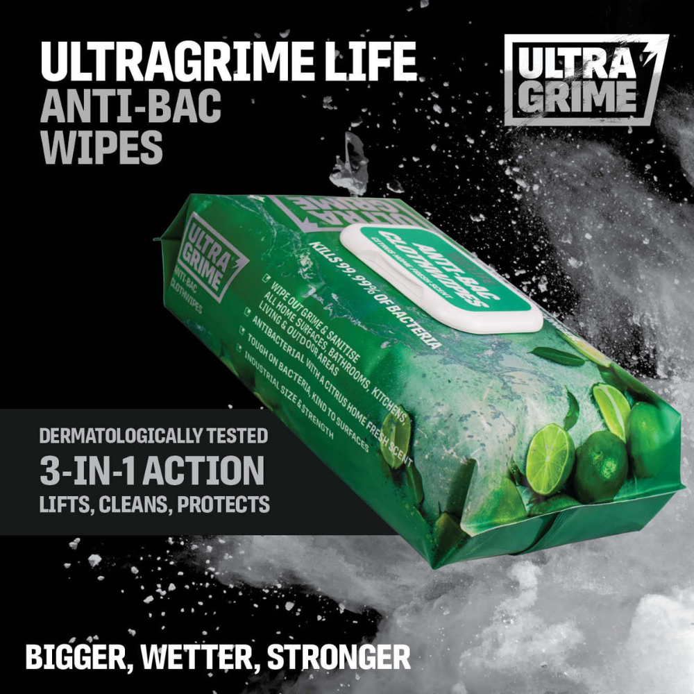 UltraGrime Anti-Bac Clothwipes effortlessly eliminates bacteria and viruses*, making them perfect for everyday tough clean-up jobs. The unique formulation, coupled with bigger, wetter & stronger cloth fabric, means they’re unbeatable at cleaning. With a refreshing Citrus scent to leave your home germ-free and smelling great.
