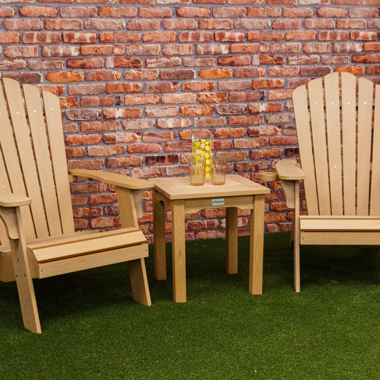 Sized to pair perfectly with two Adirondack chairs (Sandwick or Speyside models), this table adds both practicality and style to your patio or garden.