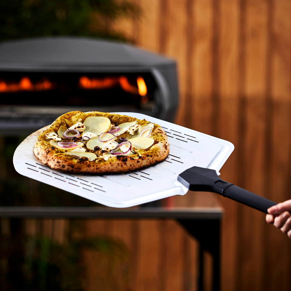 This bundle gives you everything to fire up your pizza nights straight away. The Etna Rotante’s main U-shaped burner and booster burner keep the stone evenly hot for a constant flow of perfectly cooked pizzas. The included perforated peel makes sliding pizzas in and out effortless while reducing excess flour. The fitted cover protects your oven from the elements, and the infrared temperature gun ensures you’re cooking at the perfect heat every time.
