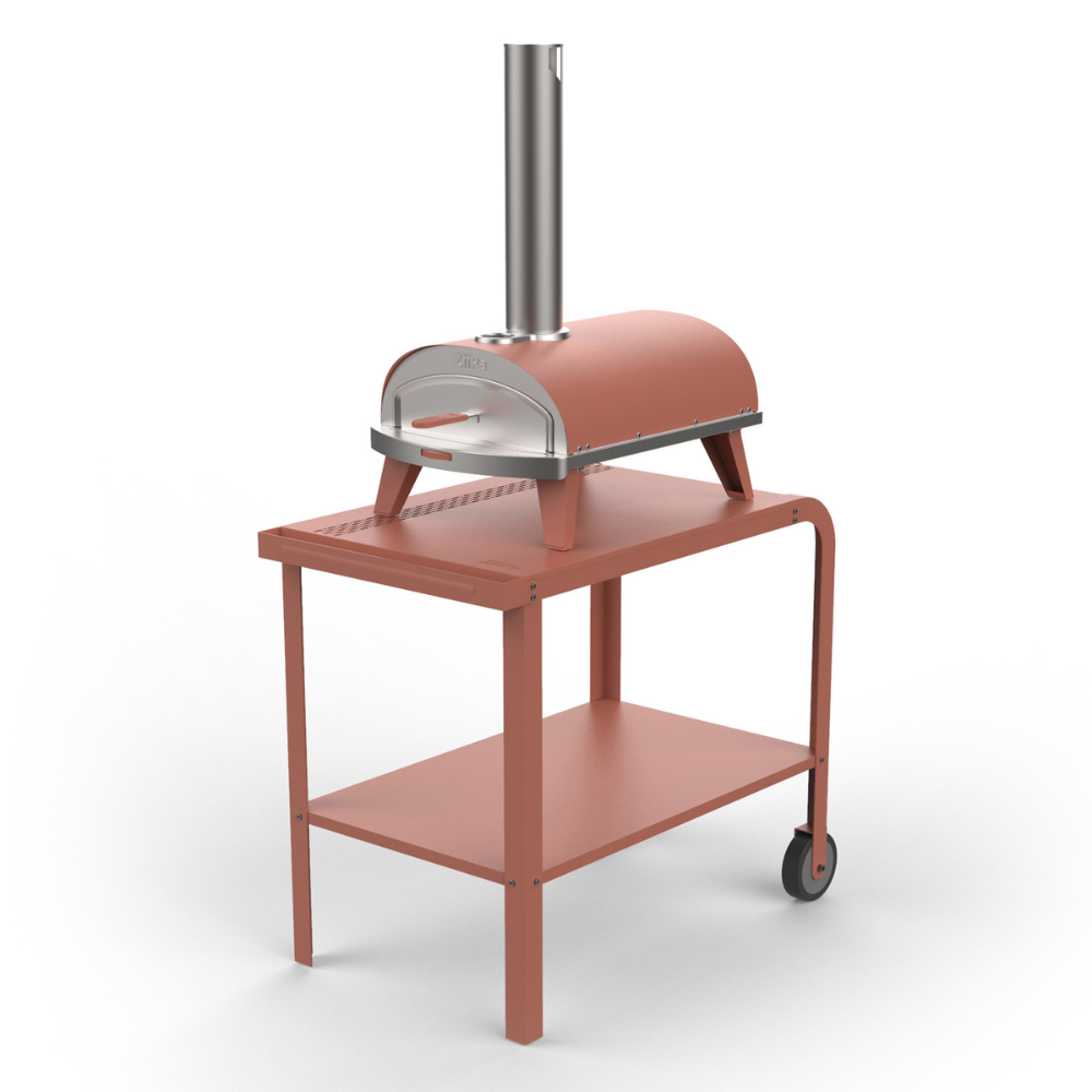Also included in this bundle is the Vallone garden trolley. Its robust construction ensures stability, allowing you to set up a dedicated pizza corner in your garden with ease. Featuring a convenient handle and two sturdy wheels at the back, the Vallone trolley is effortlessly mobile. Move it around your garden with ease, finding the perfect spot to create culinary masterpieces. The upper tray provides a secure and spacious platform for your pizza oven, ensuring it's at the perfect height for easy access. Meanwhile, the lower tray offers ample storage space for all your essential ingredients, utensils, and accessories, keeping everything organized and within arm's reach.